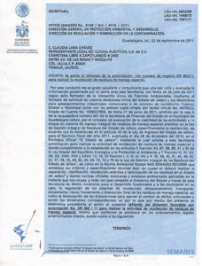 Concepto: Autorización para el acopio de residuos de manejo especial.